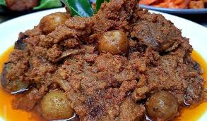 Rendang adalah hidangan daging sapi yang dimasak dengan santan dan rempah-rempah khas Minangkabau dari Sumatra Barat. Proses memasaknya yang memakan waktu berjam-jam menghasilkan daging yang empuk dengan bumbu yang meresap sempurna. Rendang dikenal karena rasanya yang kaya dan pedas, serta dapat bertahan lama tanpa pengawet.